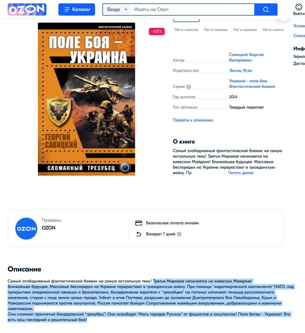 « In essence, Ukraine’s ruling circles decided to justify their country’s independence through the denial of its past, however, except for border issues. They began to mythologize and rewrite history, edit out everything that united us, and refer to the period when Ukraine was part of the Russian Empire and the Soviet Union as an occupation. The common tragedy of collectivization and famine of the early 1930s was portrayed as the genocide of the Ukrainian people. »